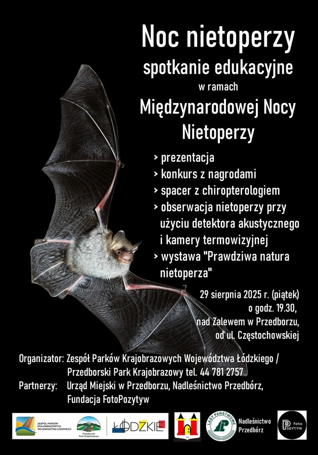 Zespół Parków Krajobrazowych Województwa Łódzkiego / Przedborski Park Krajobrazowy serdecznie zaprasza na wyjątkowe wydarzenie edukacyjne w ramach Międzynarodowej Nocy Nietoperzy.