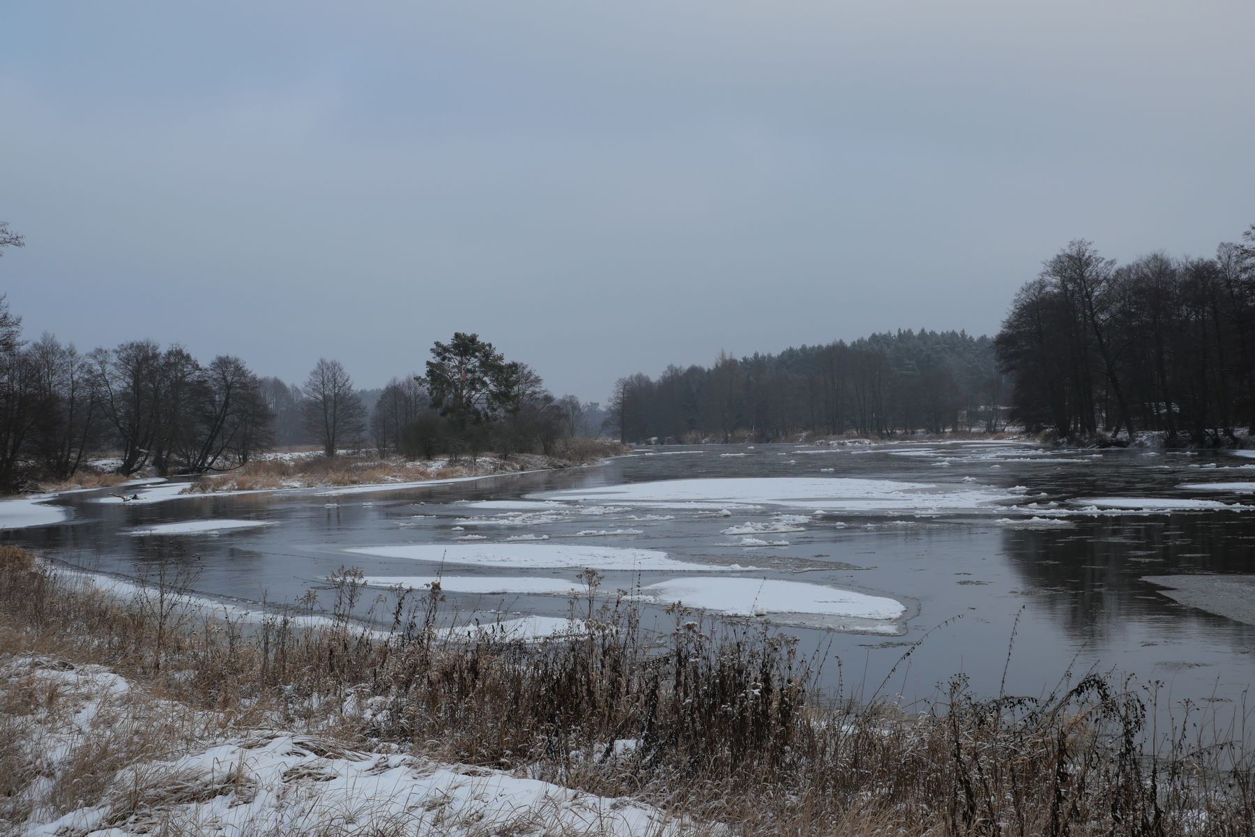 Ostatnie dni przyniosły nam dawno niewidzianą, prawdziwie zimową aurę. Zamarzły zarówno mniejsze, jak i większe zbiorniki wodne, co spowodowało koncentrację ptaków na niezamarzniętych odcinkach rzek. Również na Pilicy, na terenie Spalskiego Parku Krajobrazowego, odnotowaliśmy w ostatnim czasie znaczny wzrost liczebności ptaków przebywających na wodzie.