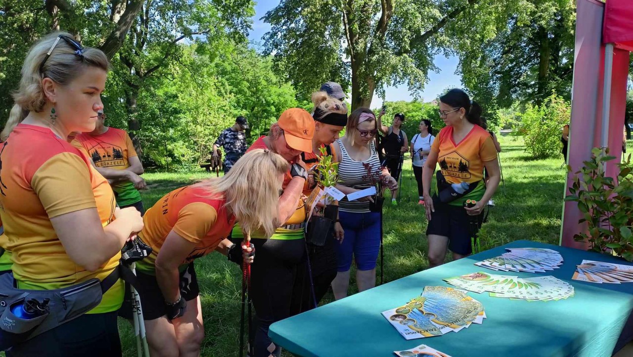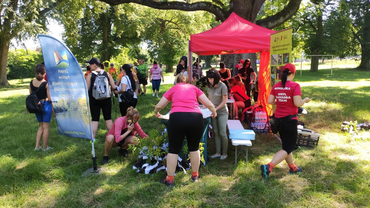 Po krótkiej rozgrzewce w parku dworskim, około 100-osobowa grupa wyruszyła w teren po najciekawszych i najcenniejszych przyrodniczo zakątkach doliny Warty. Około 10 – kilometrowa trasa była bardzo urozmaicona. Uczestnicy mogli podziwiać malowniczo wijącą się rzekę Wartę z wysokich brzegów doliny, starorzecze, schrony bojowe z okresu II wojny światowej, a także romański kościół pod wezwaniem św. Urszuli i jedenastu tysięcy dziewic. Na koniec, każdy piechur został uhonorowany pamiątkowym medalem. Na mecie czekał też słodki poczęstunek oraz ognisko i kiełbaski. Ponadto wręczone zostały nagrody za najlepszą technikę marszu. Dużym zainteresowaniem cieszyło się stoisko zorganizowane przez pracowników Oddziału Sieradzkich Parków Krajobrazowych, na którym promowaliśmy nasze parki, a także projekt „Owocowe łódzkie”. Nordic Walking Polska Garrosa Team Sieradz dziękujemy za współorganizację, a wszystkim uczestnikom rajdu za tak liczne przybycie. Zapraszamy ponownie.