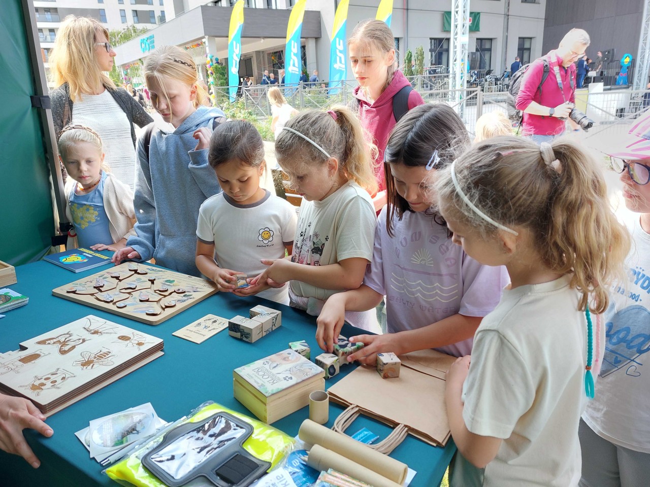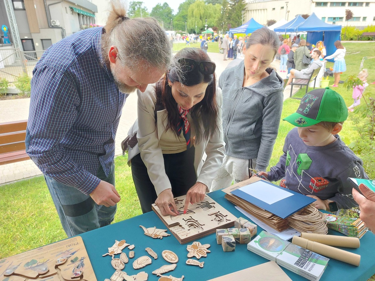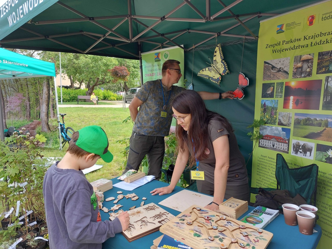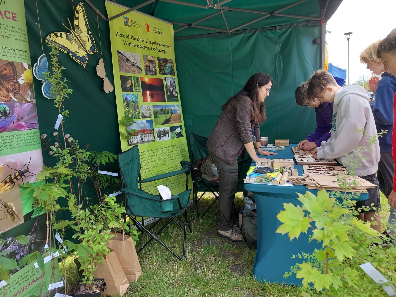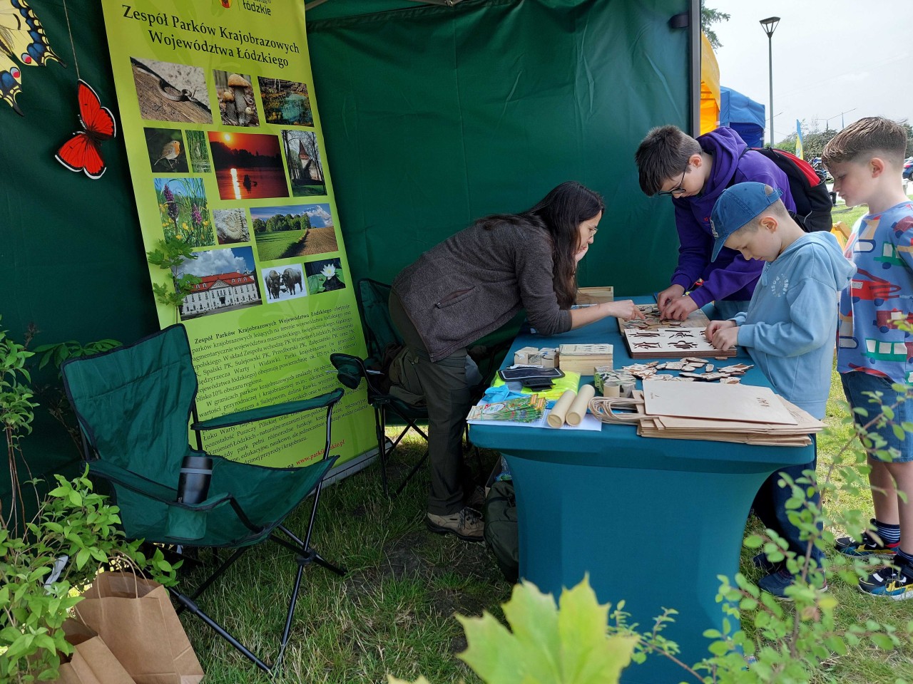Na pikniku dzieci mogły skorzystać z wielu atrakcji. Oczywiście było też stoisko Zespołu Parków Krajobrazowych Województwa Łódzkiego – Oddziału Bolimowskiego Parku Krajobrazowego, na którym odbywały się liczne konkursy pozwalające sprawdzić i udoskonalić swoja wiedzę oraz zdolności manualne. Dzieciaki układały klocki i dopasowywankę z obrazkami ptaków i ssaków występujących na terenie Bolimowskiego Parku Krajobrazowego, a także tworzyły cykle rozwojowe wybranych owadów. Zadania wymagały skupienia i precyzji. Dostarczały także wielu emocji. Nagrodami w konkursach były sadzonki drzew i krzewów w ramach projektu „Owocowe Łódzkie 2025”, wydawnictwa Zespołu Parków oraz drobne gadżety.