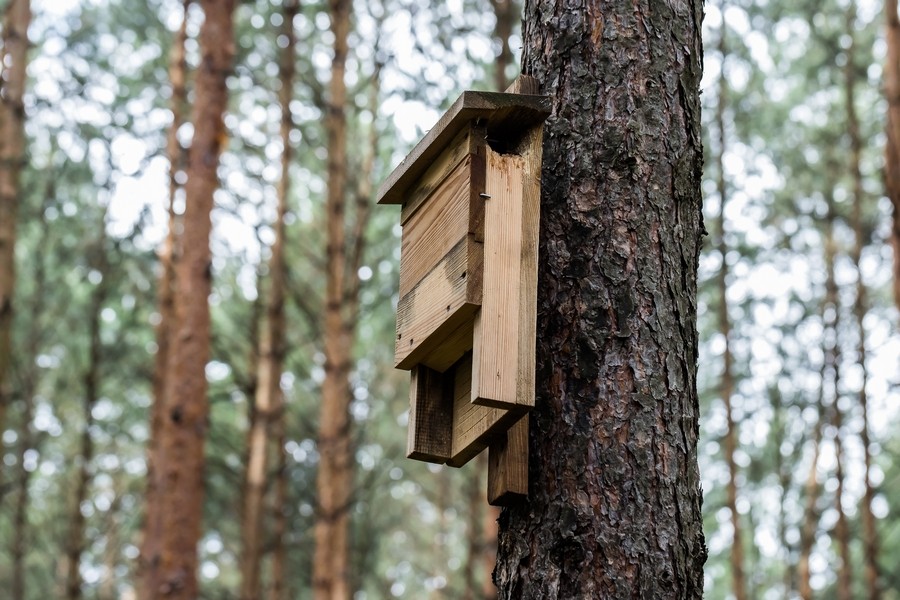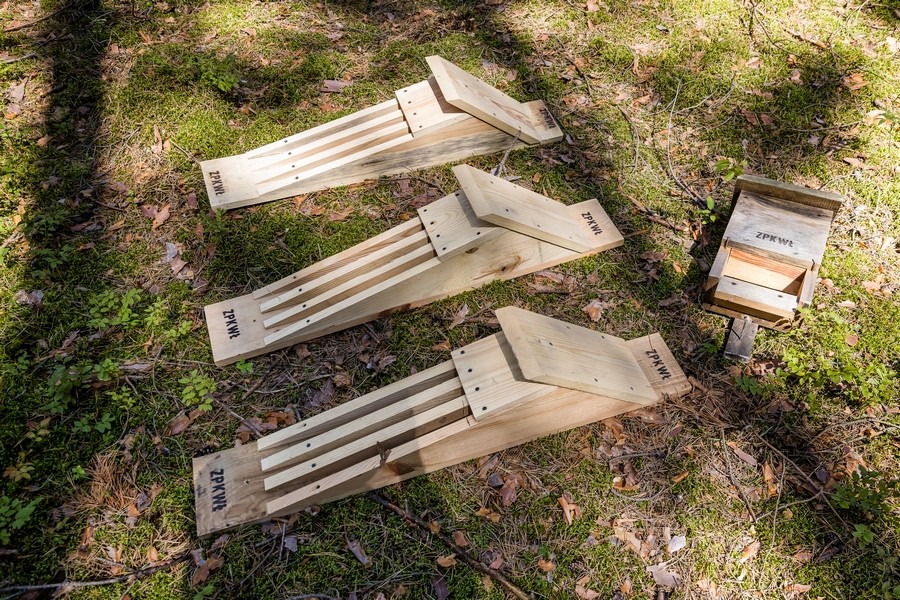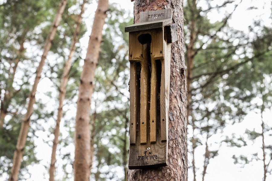 Kontynuowano również czynną ochronę nietoperzy. W ramach działań powieszono nowe skrzynki, które zostały od razu zinwentaryzowane w programie GIS. Równocześnie przeprowadzono kontrolę zasiedlenia budek powieszonych w poprzednich latach oraz dokonano niezbędnych napraw uszkodzonych przez dzięcioły budek.