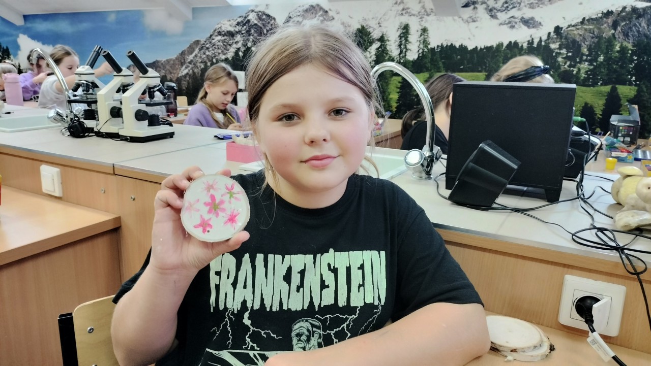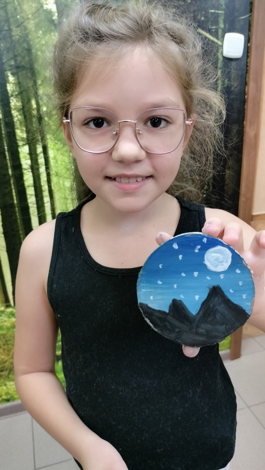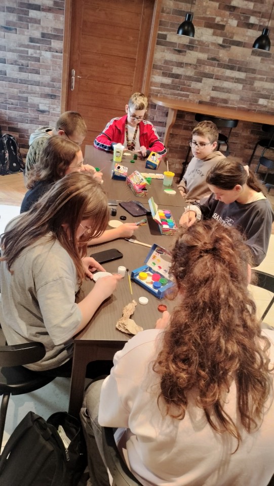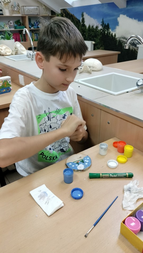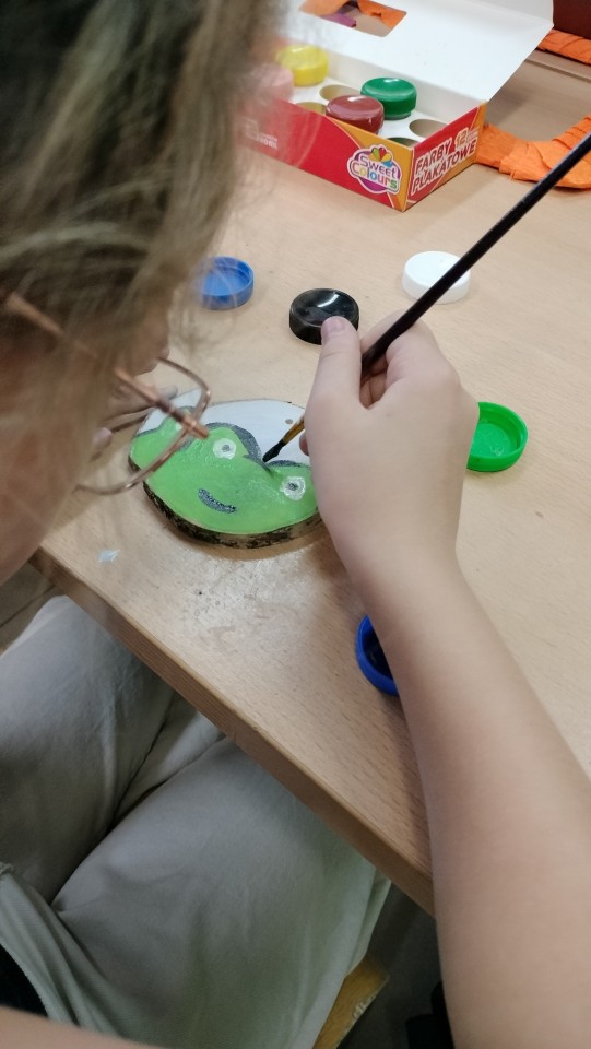 Następnym punktem programu były warsztaty malowania na drewnie, które zawsze cieszą się dużą popularnością. Nic w tym dziwnego, ponieważ drewniane elementy dają poczucie autentycznego kontaktu z materiałem. Są naturalne, mają fakturę, która inspiruje i zapach działający na zmysły w sposób, którego nie zastąpi gładka kartka papieru. Podczas warsztatów nie ograniczaliśmy się do konkretnej tematyki. Dzięki temu powstawały bardzo różnorodne prace, inspirowane przyrodą, podróżami, czy domowymi pupilami.