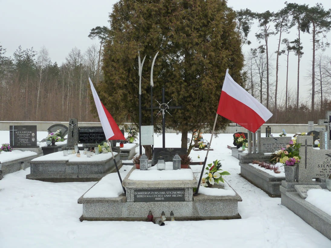 • Ręczno – na cmentarzu rzymskokatolickim znajduje się mogiła zbiorowa 5 nieznanych powstańców poległych w bitwie na Młynkach Plebejskich nieopodal Ręczna 2 lutego 1864 roku. Znajduje się tu także mogiła weterana z 1863 roku, Stanisława Okszy-Strzeleckiego.