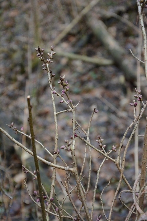Wawrzynek wilczełyko (Daphne mezereum) jest drobnym, słabo rozgałęzionym krzewem