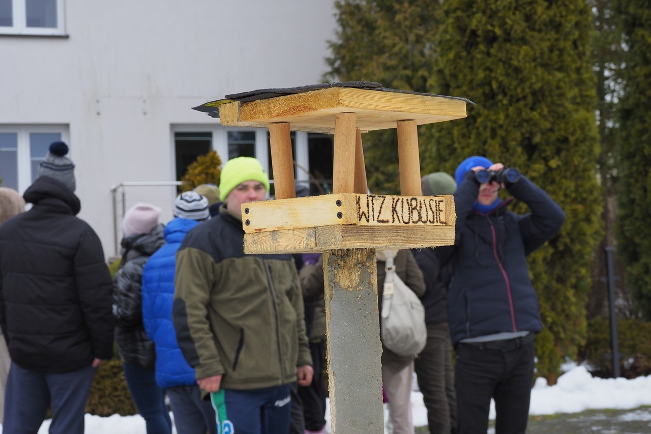 Ptasia Godzinka jest przeznaczona dla wszystkich osób zainteresowanych przyrodą i ptakami w swoim otoczeniu. Wziąć w niej udział może absolutnie każdy – nawet bez wcześniejszego doświadczenia w liczeniu ptaków". W dniu 16.01.2026 r. w siedzibie Sulejowskiego i Spalskiego PK w Moszczenicy gościliśmy grupę 20 osób z Warsztatów Terapii Zajęciowej "Kubusie" z Moszczenicy. Grupa - z opiekunami i naszymi pracownikami z ZPKWŁ brała czynny udział w "Ptasiej Godzince". Pogoda dopisała, było zimowo, leżał śnieg i panował niewielki mróz. Centralnym miejscem obserwacji ptaków były trzy karmniki w naszej siedzibie pełne ptasich smakołyków - różne nasiona, słonina, jabłka. Uczestnicy wycieczki zostali wyposażeni w lornetki, przewodniki terenowe oraz zdjęcia ptaków udostępnione przez organizatorów. Ponieważ ptaki są dokarmiane już od listopada - to przy karmnikach pojawili się stali bywalcy: bogatki 15 szt., modraszki 10 szt., sójki 4 szt., kowalik, rudzik, mazurek, kos. Nieregularnie przy karmniku pojawiają się dzwońce i czyże. Nasi przewodnicy opisywali charakterystyczne cechy po których można rozpoznać poszczególne gatunki i ich płeć. Po godzinnej stacjonarnej obserwacji, grupa udała się na spacer do lasu i tereny otwarte łąkowe. W tym środowisku udało nam się zobaczyć: krogulca, czaple siwą, tokujące kruki.