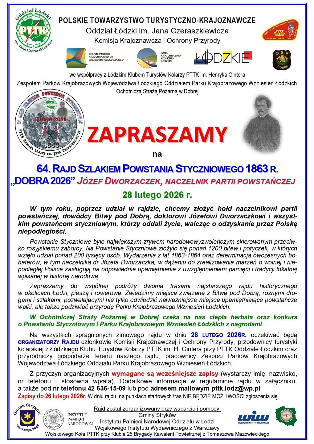 W tym roku, poprzez udział w rajdzie, chcemy złożyć hołd naczelnikowi partii powstańczej, dowódcy Bitwy pod Dobrą, doktorowi Józefowi Dworzaczkowi oraz wszystkim powstańcom styczniowym, którzy oddali życie, walcząc o odzyskanie przez Polskę niepodległości.