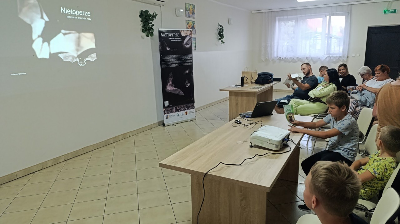 W piątek wieczorem 06.09.2024 w ramach „Międzynarodowej Nocy Nietoperzy” odbyło się spotkanie w sali OSP w Pstrokoniach. Na wstępie, ok. 40 osób wysłuchało kameralnej prelekcji o nietoperzach, a w przeprowadzonym później konkursie młodzież wykazała się przyswojoną podczas wykladu wiedzą, zdobywając "nietoperzowe" (i nie tylko związane z tematyką nietoperzową) nagrody. Po zachodzie słońca całą grupą przeszliśmy do przypałacowego parku, gdzie obserwowaliśmy i słuchaliśmy, przy pomocy specjalnego detektora ultradźwięków, latające nietoperze.